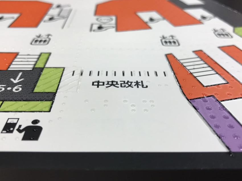 2010年頃より、印刷会社として社会貢献できないかと、模索していました。ある日、ニスの実験をしていたときに、「ポタッ」と垂らしたニスが、ポコッと固まり、「これで点字ができるのかな」と思い、表面加工での点字印刷の試作を始めました。そこから2013年に市場に出すまで長い道のりでした。いまでは、「サイトワールド」や「アメディアフェア」といった視覚障害者福祉機器展のレイアウト案内図を作成したり、テーマパークの蝕知図や浮世絵の蝕察本を作成しています。