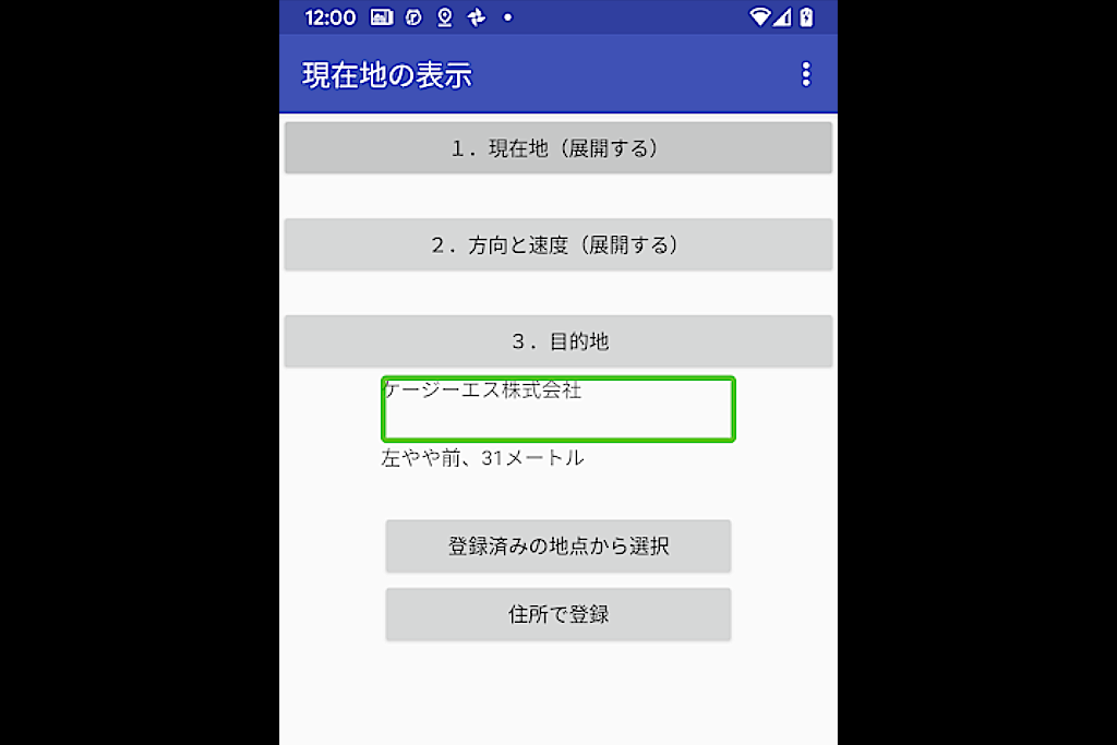 ホーム 福祉機器事業 福祉機器事業TOP 製品紹介 ダウンロード 連携アプリ 修理お申し込み 修理お申し込みフォーム 取扱販売店 日常生活用具給付申請の流れ お客様情報登録 福祉機器事業の特徴·強み ソレノイド事業 ソレノイドTOP 製品紹介 SDCシリーズ KPSシリーズ DKSシリーズ CAシリーズ PH(チューブラ)シリーズ ソレノイド制御コントローラー『SEC-BOX』 ソレノイドとは ソレノイド事業の特徴·強み 用途事例 技術解説 よくある質問 代理店紹介 総合カタログダウンロード 企業情報 企業情報 ご挨拶 沿革 アクセス 当社の特徴·強み ソレイユとは 見学·採用情報 お問い合わせ Contact us お知らせ一覧 文字サイズ·色合い変更 アクセシビリティについて サイトマップ 閉じる 文字サイズ·色合い変更 アクセシビリティについて 福祉機器と高精度ソレノイド製品ケージーエス株式会社 お電話でのお問い合わせ0493-72-7311 お問い合わせContact us 現在のページ属性福祉機器事業 ソレノイド事業 当社の特徴・強み 企業情報 見学·採用情報 ソレイユとは ホーム福祉機器事業製品紹介BMSユーティリティ「現在地の表示」 製品詳細 BMSユーティリティ「現在地の表示」 視覚障がい者向けの現在地確認ツール! スマートフォンの便利さを、是非、あなたの指で体験してください! Androidスマートフォン用アプリ BMSユーティリティ「現在地の表示」 特徴 このソフトウェアは、Androidスマートフォンの位置・方位測定機能と、国土交通省が公開する位置参照情報を利用した、視覚障がい者向けの現在地確認ツールです。 このアプリでは、以下のことができます: 現在地の最寄の地点の住所情報を確認できます。 現在地や、住所で検索した地点を、複数登録しておくことができます。 登録地点に近付いた時に、音声で確認できます。 住所で検索した地点や、登録地点の中から目的地を設定し、目的地までの方向と距離を確認できます。 登録地点のGoogleマップを表示して、晴眼者に道を尋ねたり、周辺の情報を検索できます。 スマホを向けている方角を確認できます。 電車などでの移動中、場所、進行方向、速度を確認できます。 ※外出中に機械の操作に気を取られることは大変危険です。 また、GPSの測位や方位測定には、周囲の環境により、誤差が伴います。 まずは、誘導して頂ける方がある時などにご使用頂き、アプリの特性や使い勝手をご確認ください。 ダウンロード ※下記リンクをクリックすると、ファイルをダウンロードします。 (お使いのブラウザによっては動作が異なる事があります) アプリダウンロード GooglePlay 仕様 名称 BMSユーティリティ「現在地の表示」 動作環境 ・Bluetooth SPP接続 (Bluetooth SerialPortProfile)が利用可能な機種(必須) ・Android 6.0以上 (必須) ・スクリーンリーダー(Accessibility Suite、TalkBackなど)が利用可能な機種(必須) ・日本語の音声出力、および、音声認識が可能な機種(必須) ・ユーザー補助サービスが追加可能な機種(推奨) ・仮想キーボード(ソフトキーボード)が追加可能な機種(推奨) ・[ユーザ補助機能]ボタンが使用できる機種(推奨) ※本製品は改良の予告なく、仕様・デザインを変更する場合がございます。ご了承下さい。 福祉機器に関するお問い合わせはお気軽にどうぞ! お問い合わせ修理のお申し込み